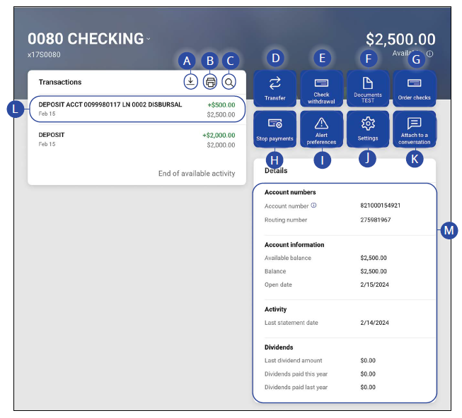 - Your account number can easily be located in the details section after selecting the account in digital banking
